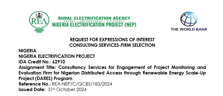 REOI Consultancy Services for Engagement of Project Monitoring and Evaluation Firm for Nigerian Distributed Access through Renewable Energy Scale-Up Project (DARES) Program